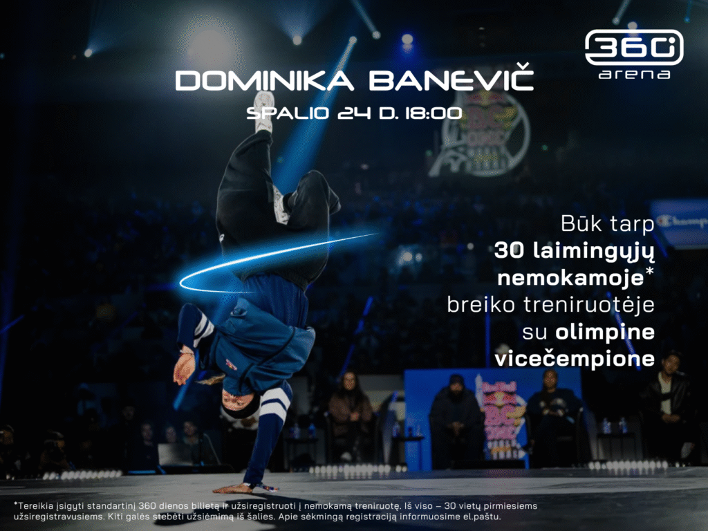 Spalio 24 d. nuo 18:00 val. 360 arena prisipildys energijos, ritmo ir judesio, čia vyks breiko treniruotė su Lietuvos olimpine vicečempione Dominika Banevič.