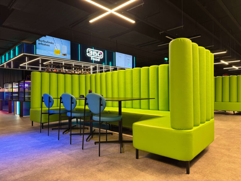 Taip. Turime restorano zoną, poilsio zonas, masažines kėdes ir bendras erdves kur tėveliai gali atsipalaiduoti.